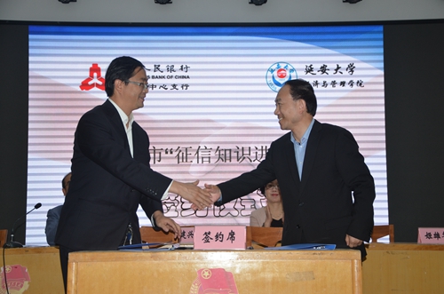 這是我與中國(guó)人民銀行延安市中心支行合作舉辦的系列講座之一。9月18日,我院院長(zhǎng)姬雄華與中國(guó)人民銀行延安市中心支行黨委書記、行長(zhǎng)張健興簽訂了《“征信知識(shí)進(jìn)課堂”合作協(xié)議》,協(xié)議約定將征信知識(shí)教育納入金融教育專業(yè)之中,定期或不定期舉辦征信知識(shí)講座,采取年度授課、校園宣傳、專題講座等多種形式,建立征信教育長(zhǎng)效機(jī)制。隨后,中國(guó)人民銀行延安市中心支行邀請(qǐng)西安分行征信處章紅處長(zhǎng),為經(jīng)濟(jì)與管理學(xué)院學(xué)生作了題為《揚(yáng)起信用的風(fēng)帆——珍惜個(gè)人信用,成就美好明天》專題講座。交通銀行延安分行零售業(yè)務(wù)部總經(jīng)理高軍作了題為《樹立正確理財(cái)觀念,養(yǎng)成良好理財(cái)習(xí)慣》金融知識(shí)講座。