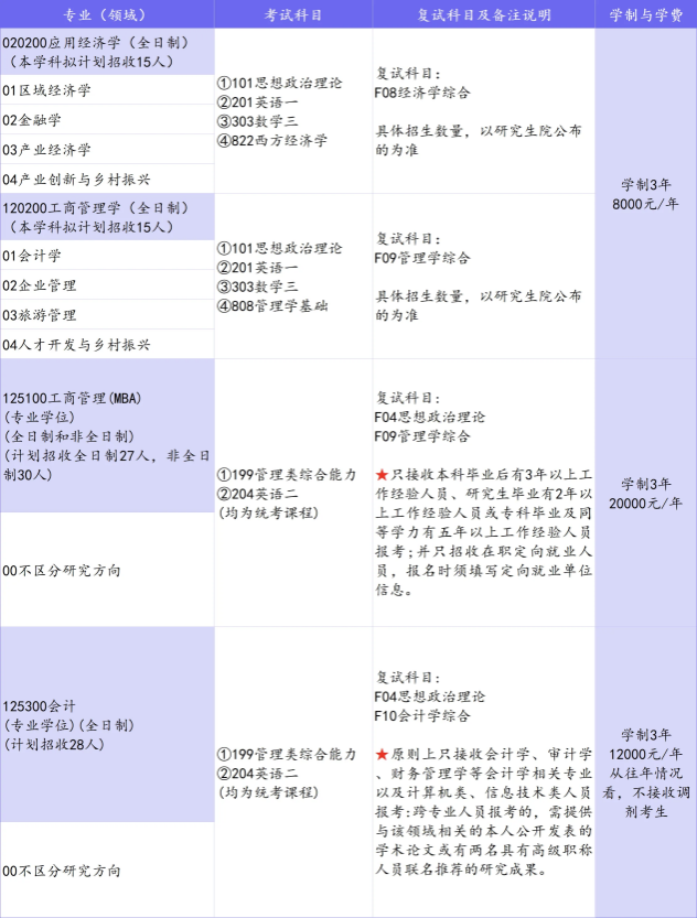 學(xué)制、學(xué)費和經(jīng)濟與管理學(xué)院學(xué)術(shù)學(xué)位碩士研究生一致