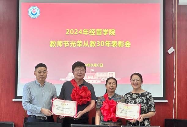 在第40個(gè)教師節(jié)來(lái)臨之際,為大力弘揚(yáng)教育家精神,營(yíng)造全院尊師重教的濃厚氛圍,激發(fā)全院教師堅(jiān)守初心、潛心育人的責(zé)任心和自豪感。9月6日下午,經(jīng)管學(xué)院舉行了2024年慶祝教師節(jié)表彰會(huì)。學(xué)院近五年新入職教師、從教滿30年教師、全體院領(lǐng)導(dǎo)參加了會(huì)議。會(huì)議由經(jīng)管學(xué)院黨委書記付旭主持。