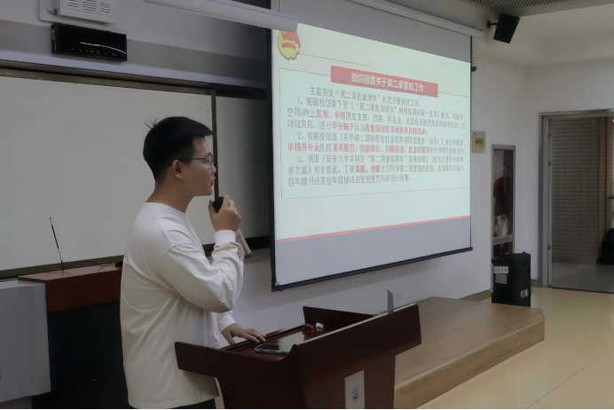 為深入學習貫徹習近平總書記關于青年工作的重要思想,扎實推進新學期各項團學工作順利進行,夯實團組織的基層建設,提高青年團員的思想素質和工作能力,引導廣大青年團員堅定理想信念,我院團委于2024年10月10日18:30在第七階梯教室開展2024級新生基礎團務知識及第二課堂培訓會,參與本次培訓會的有全體24級新生及部分院團委成員。
