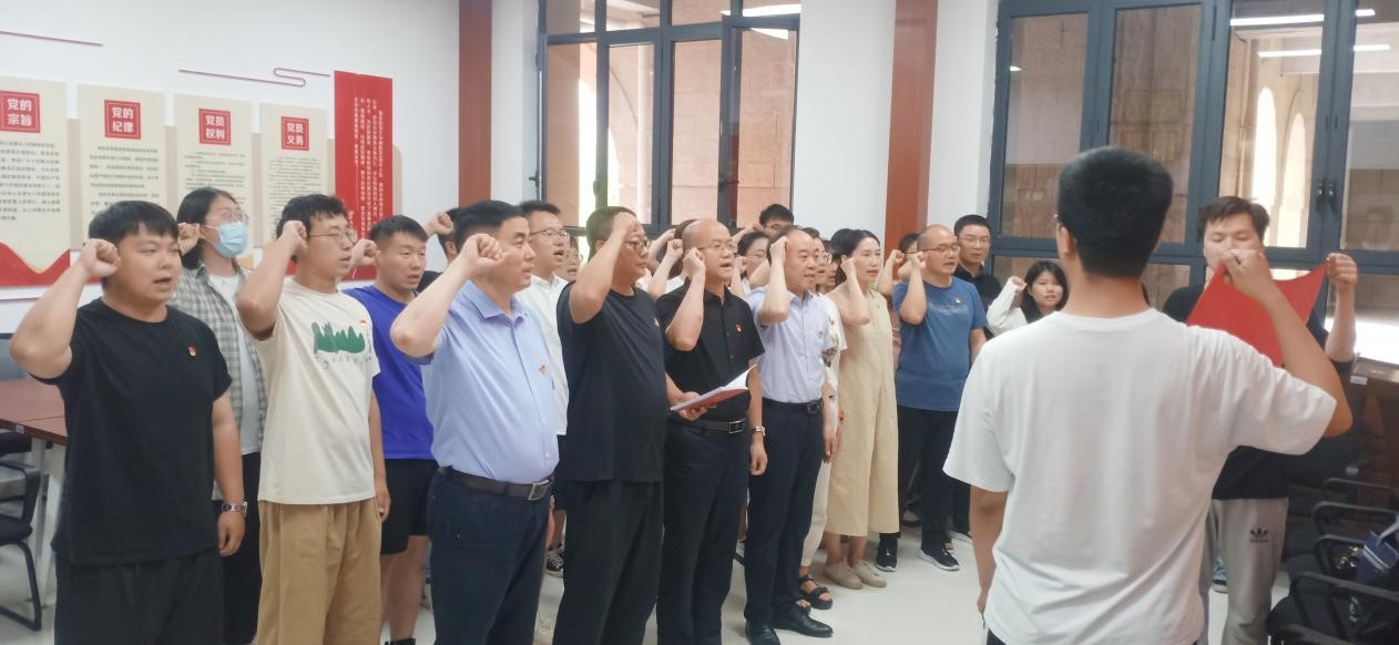 首先,在學(xué)院黨委副書記冉曉輝的帶領(lǐng)下,全體黨員面對(duì)鮮紅的黨旗,共同高舉右拳,用嘹亮而堅(jiān)定的聲音莊嚴(yán)宣誓:“我志愿加入中國(guó)共產(chǎn)黨,擁護(hù)黨的綱領(lǐng),遵守黨的章程,履行黨員義務(wù),執(zhí)行黨的決定,嚴(yán)守黨的紀(jì)律,保守黨的秘密,對(duì)黨忠誠(chéng),積極工作,為共產(chǎn)主義奮斗終身,隨時(shí)準(zhǔn)備為黨和人民犧牲一切,永不叛黨。”鏗鏘有力的錚錚誓言,表達(dá)了同志們對(duì)黨的無(wú)限忠誠(chéng)、熱愛和聽黨話、跟黨走的堅(jiān)定決心。