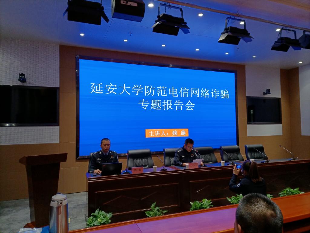為維護(hù)校園穩(wěn)定,增強(qiáng)同學(xué)們對(duì)詐騙等違法犯罪行為的防范意識(shí),保護(hù)學(xué)生人身財(cái)產(chǎn)安全,積極打造平安校園,我校保衛(wèi)處聯(lián)合延安市公安局于3月25日在新校區(qū)圖書館一樓報(bào)告廳舉辦“防范電信網(wǎng)絡(luò)詐騙”專題報(bào)告會(huì)。我院全體輔導(dǎo)員和學(xué)生干部參加了此次報(bào)告會(huì)。報(bào)告會(huì)由延安市公安局魏鑫警官主講。
