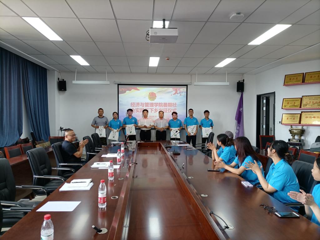7月16日下午,經(jīng)濟(jì)與管理學(xué)院在學(xué)院五樓會議室舉行了暑期三下鄉(xiāng)社會實(shí)踐出征儀式。學(xué)院黨委書記雷偉、院長王進(jìn)、黨委副書記冉曉輝,輔導(dǎo)員及全體出征學(xué)生,共三十余人參加了會議。會議由黨委副書記冉曉輝主持。