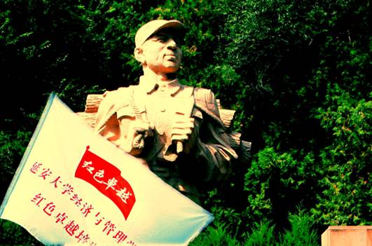 27日早晨,“紅色卓越”培訓(xùn)班在圖書館前舉行了開班儀式,學(xué)員們正式踏上了這趟紅色專列。開班儀式由經(jīng)管學(xué)院薛皓副書記主持,組織部部長劉述進為“紅色卓越”班授了旗。黨委宣傳部、學(xué)工部、團委的負責人,以及經(jīng)管學(xué)院全體輔導(dǎo)員也參加了開班儀式。“培養(yǎng)有境界、有高度、有學(xué)識、有素質(zhì)、有責任、有成果的具有紅色大學(xué)特質(zhì)的卓越人才,是我們此次培訓(xùn)的目的,希望同學(xué)們勇于擔當,面向未來,讓凝固的歷史在新時代中放射出閃耀的光芒。”經(jīng)管學(xué)院姜慶書記在動員講話中說。開班儀式后,“紅色卓越”班的學(xué)員們身著紅軍服,雄赳赳,氣昂昂的開啟了他們紅色之旅的第一站——棗園為人民服務(wù)講話臺前,接受現(xiàn)場教學(xué)。