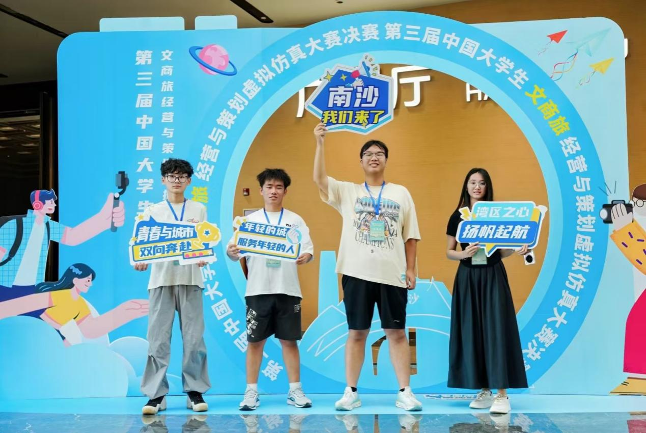 8月19日至25日,由中國旅游協(xié)會旅游教育分會、中國共產(chǎn)主義青年團廣州市南沙區(qū)委員會、南開大學旅游與服務(wù)學院、廣州南沙旅游發(fā)展有限公司聯(lián)合主辦,天津新旅科技有限公司協(xié)辦的第三屆中國大學生文商旅經(jīng)營與策劃虛擬仿真大賽決賽在廣州市南沙區(qū)舉辦。共有170所國內(nèi)高校、3所國外高校、617支隊伍,3085名師生參加了初賽;最終,115所高校的309支隊伍、近千名師生脫穎而出,晉級決賽環(huán)節(jié)。我院旅游管理專業(yè)2024級屈蓉蓉、黃之罡、梁乃文、石文琪4名同學組隊參賽,最終以優(yōu)異成績晉級決賽,并榮獲全國總決賽二等獎,指導老師徐寧、張龍文獲“優(yōu)秀指導老師”榮譽稱號。