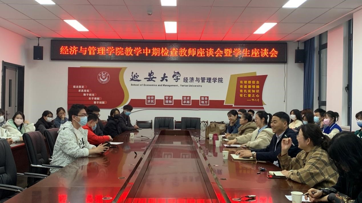 為規(guī)范教學(xué)秩序,提高教學(xué)質(zhì)量,加強(qiáng)對(duì)教學(xué)各環(huán)節(jié)的監(jiān)督管理,經(jīng)管學(xué)院于2022年11月8日下午在學(xué)院515室召開(kāi)了教學(xué)中期檢查師生座談會(huì)。學(xué)院系主任、教研室組長(zhǎng)、督導(dǎo)組成員、青年博士及各班學(xué)生代表參加座談會(huì),會(huì)議由經(jīng)管學(xué)院教學(xué)副院長(zhǎng)陳云橋主持。