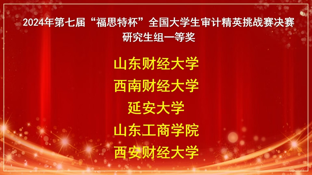 2024年11月29日-30日,由中國審計(jì)學(xué)會(huì)審計(jì)教育分會(huì)主辦,教育部審計(jì)學(xué)課程群虛擬教研室、南京審計(jì)大學(xué)政府審計(jì)學(xué)院承辦,廣州市福思特科技有限公司提供技術(shù)支持的2024年第七屆“福思特杯”全國大學(xué)生審計(jì)精英挑戰(zhàn)賽在南京審計(jì)大學(xué)成功舉辦。經(jīng)管學(xué)院王曉軍老師指導(dǎo)的,由2023級(jí)會(huì)計(jì)專碩趙云海、2024級(jí)會(huì)計(jì)專碩丁藝雯和鄧佳欣三位同學(xué)組成的研究生隊(duì)榮獲全國總決賽一等獎(jiǎng)。